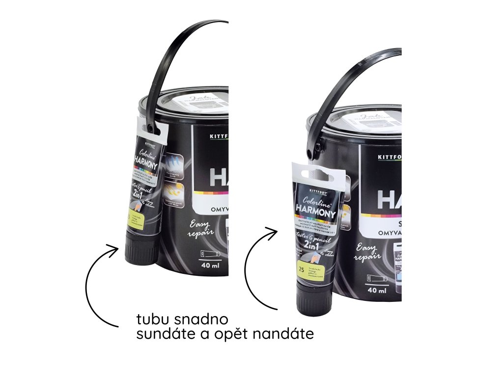 Už žádné starosti s drobnými škrábanci a šmouhami! Opravná tuba ve stejném odstínu je připevněna přímo na uchu kbelíku. Snadno ji sundáte pro rychlou opravu a po použití ji zase jednoduše zacvaknete zpět na víčko! Je tak vždy po ruce!